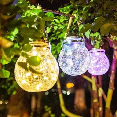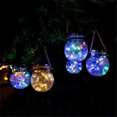 The crackle glass finish diffuses light softly, making it suitable for gardens, patios, tables, and outdoor decorative settings.
