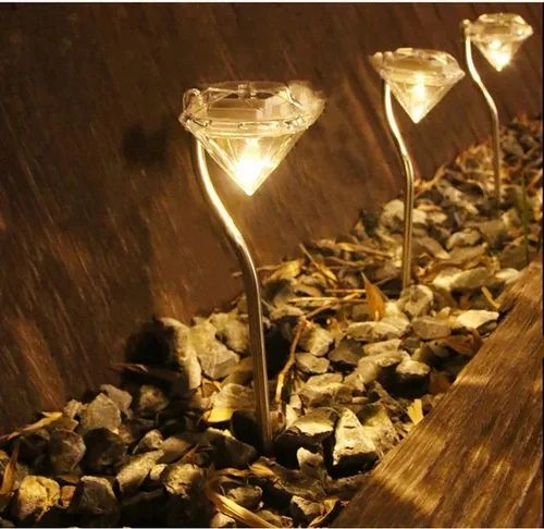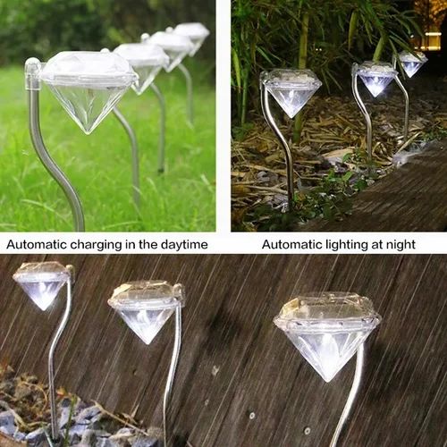 Featuring beautiful glass diamond heads with sleek stainless steel poles, these lights look stylish even during the day and transform into a magical display at night. Powered by solar energy, they charge automatically during the day and light up at dusk—no wiring required.