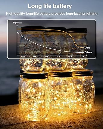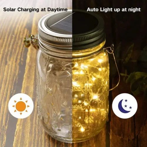 Easy to install and use—simply place or hang the jar where it receives direct sunlight during the day and switch it ON before charging. With no wiring or electricity required, the lights automatically turn on at dusk and off at dawn, providing up to 8 hours of illumination on a full charge.