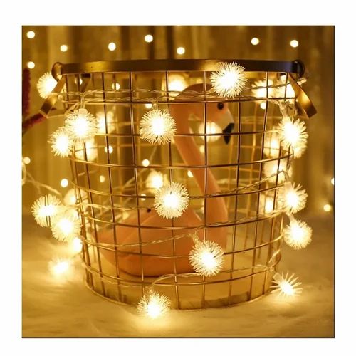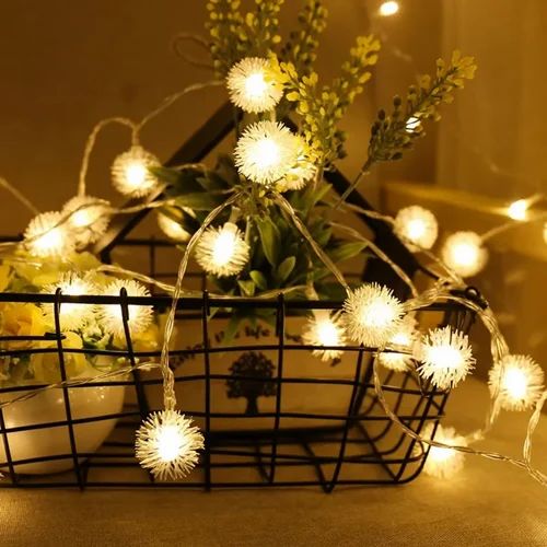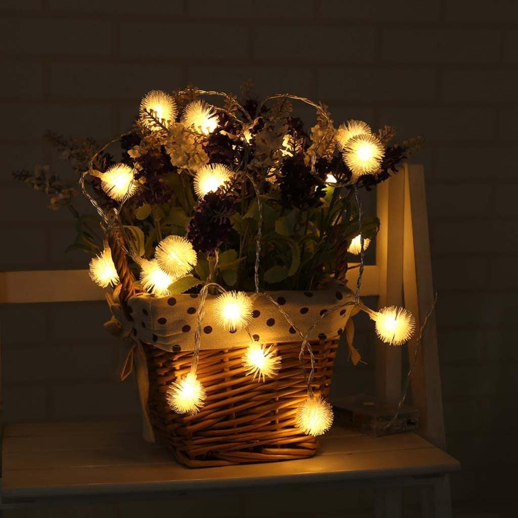 25-Lights Downy Hairy Balls String Lights Battery Fairy Light Warm White