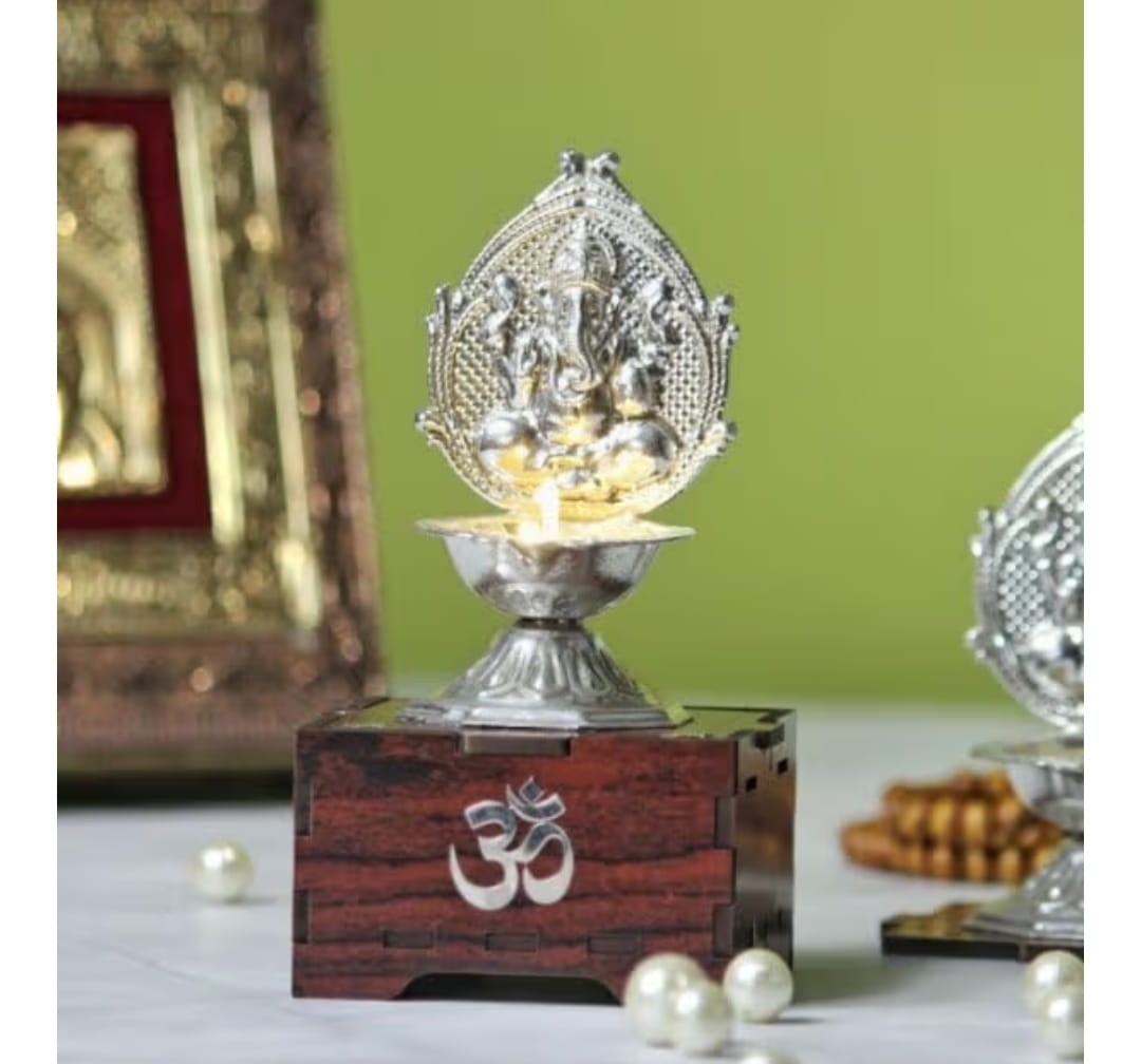 Invite blessings, positivity, and divine grace into your space with this Solar Silver Ganpati Diya. Designed to glow gently during pooja and festive moments, it blends spiritual elegance with modern solar convenience for daily worship and celebrations.