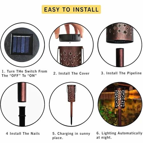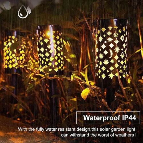 Add a premium decorative touch to gardens and landscapes with this solar-powered garden light. Featuring a durable metal body and precision star-and-moon cut patterns, it creates a warm, artistic projection on the ground. The light charges automatically through solar energy during the day and turns on at dusk, ensuring zero electricity cost and easy installation.