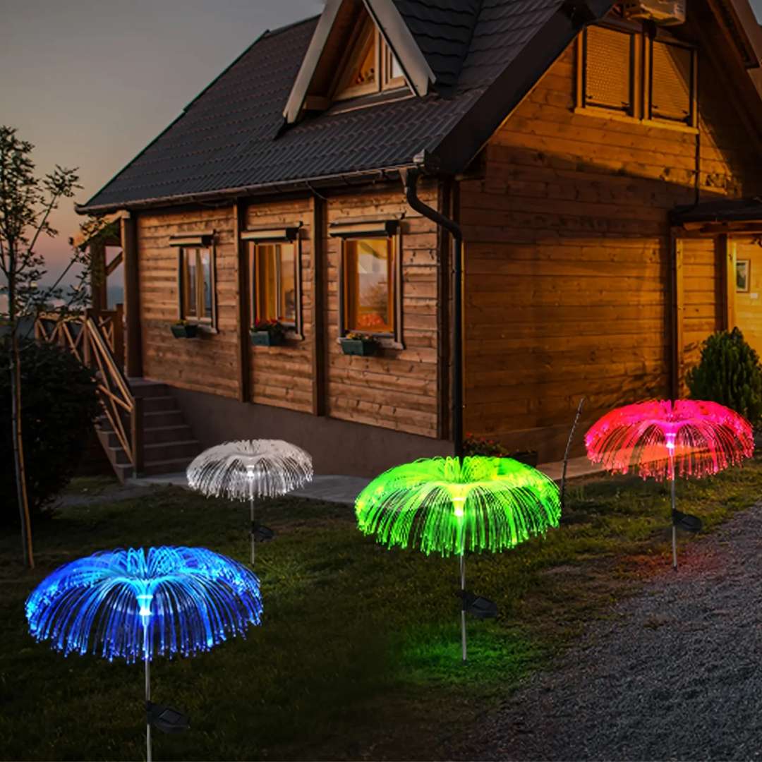 Charming mushroom-shaped lights that add a fairy-tale touch to flowerbeds and pathways. They automatically turn on at dusk and deliver a gentle, welcoming glow. Durable design blends with natural garden settings.